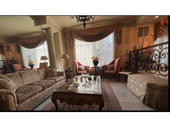 Planta baja. Sala, comedor, cocina integral con granito, sala de TV, antecomedor, biblioteca, oficina, lavandería, cuarto de servicio, 2.5 baños, cochera para 4 automóviles, gran área de asador.